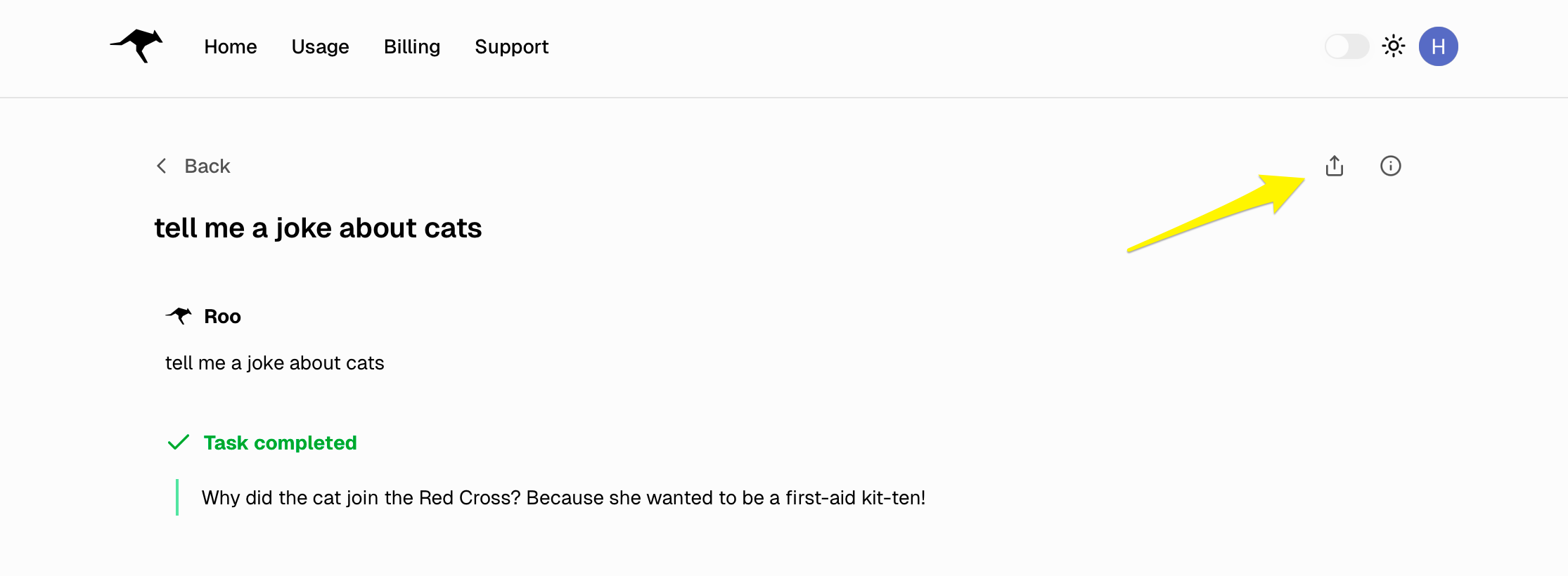 Share your Roo Code tasks and collaborate with others by making tasks publicly accessible through shareable links.